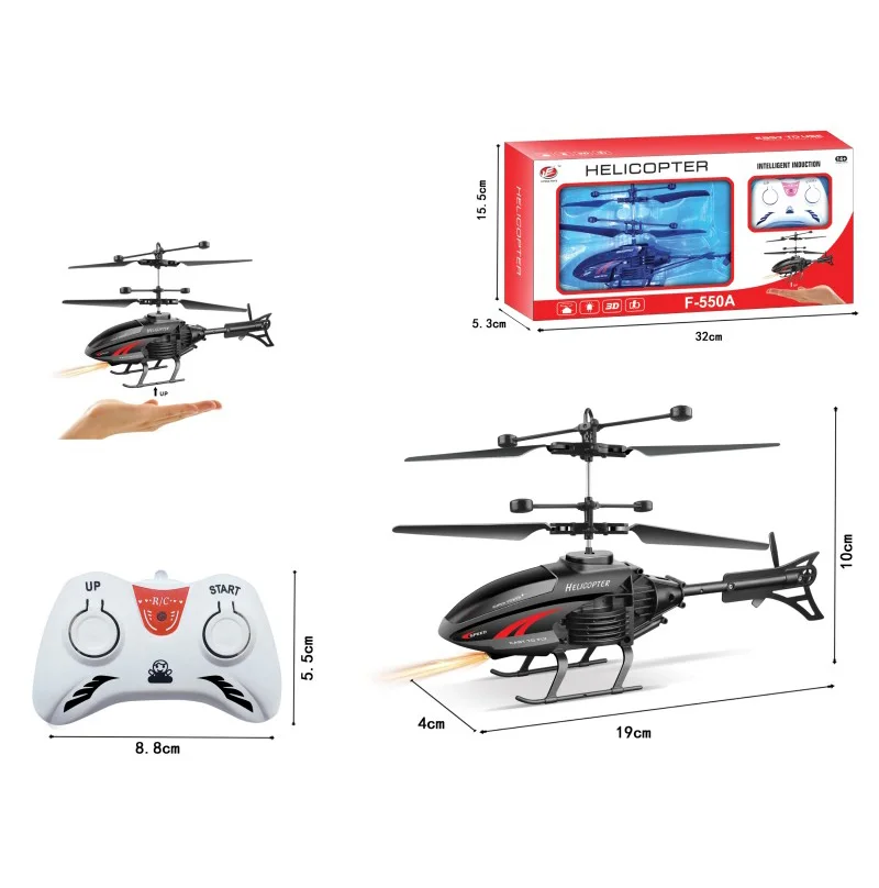 طائرة هليكوبتر كهربائية للأطفال F-550A سوداء اللون تعمل بالتحكم عن بعد، مصنوعة من البلاستيك، مناسبة للمبتدئين، مزودة بجهاز تحكم عن بعد، مزودة بخاصية "اتبعني"، للاستخدام الداخلي والخارجي